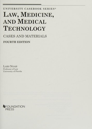 Law, Medicine, and Medical Technology, Cases and Materials